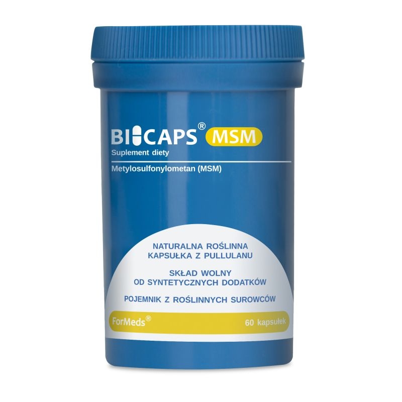 Bicaps MSM 700 mg metylosulfonylometanu w 1 kapsułce bez żadnych dodatków.