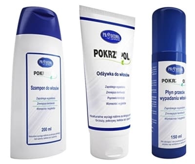 Zestaw Pokrzepol to kompleksowa pielęgnacja włosów - szampon, odżywka i płyn przeciw wypadaniu włosów. Seria Pokrzepol zawiera naturalne wyciągi z roślin: pokrzywę, skrzyp, brzozę, rozmaryn, żeń-szeń, kiełki soi i pszenicy.